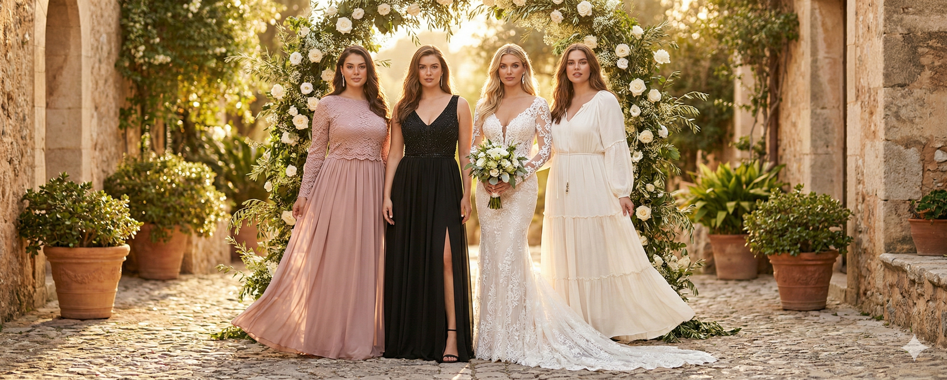 From first fitting to final dance, our bridal and evening dresses are chosen for comfort, movement and beautiful photography. Discover silhouettes that flatter every shape, with sizes and styles that work for UK weddings, garden ceremonies and city celebrations.